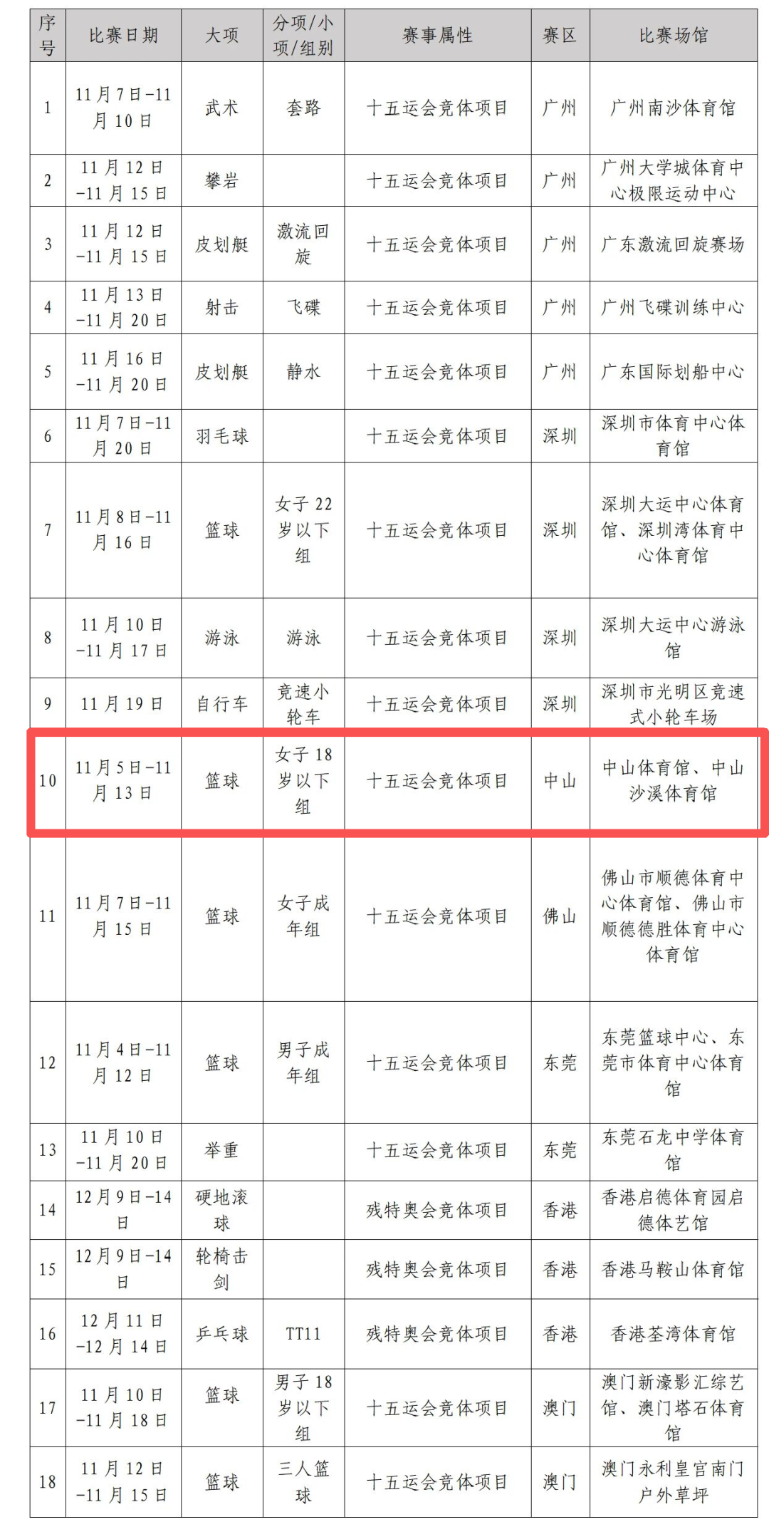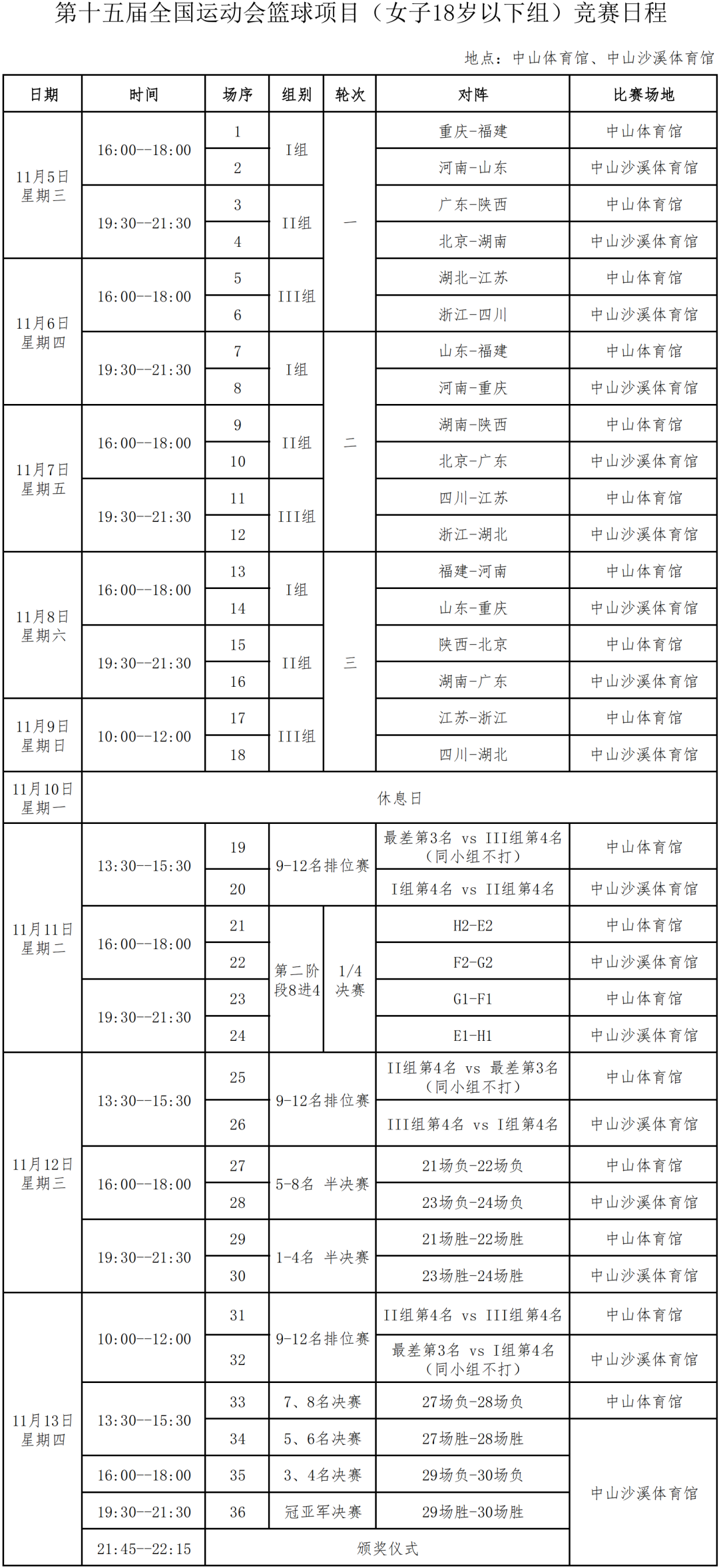 在中山體育館、中山沙溪體育館舉行
