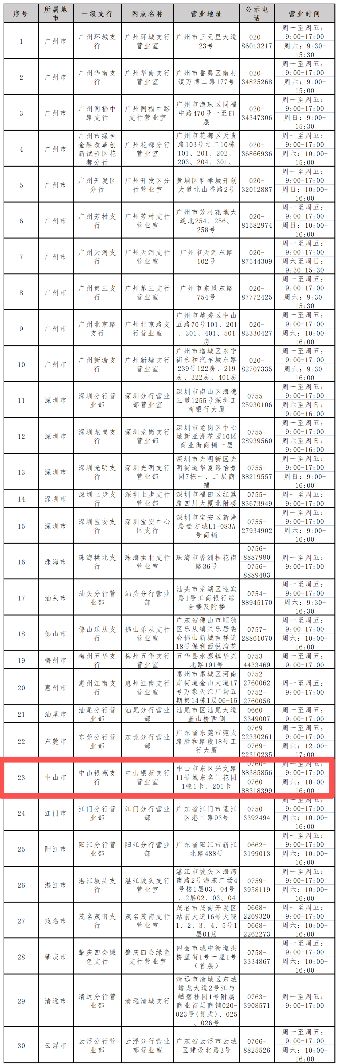 中國工商銀行30家網(wǎng)點(diǎn)信息(僅銷售廣東賽區(qū)門票)