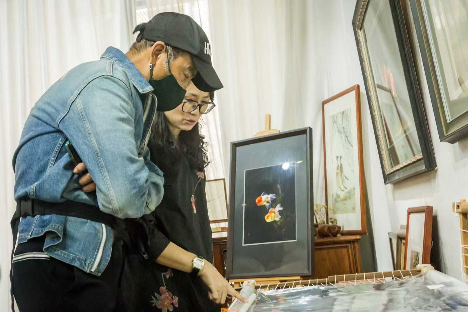 談及10 月 16 日與任達(dá)華的跨媒介藝術(shù)實(shí)驗(yàn),周雪清透露,他們?yōu)榇嘶I備了一年多?!捌鋵?shí),早在2023年2月,任達(dá)華先生來我的工作室參觀,對我們的刺繡產(chǎn)生了濃厚的興趣,那時(shí)就開始了合作。”《炫目?任達(dá)華(Luminance by Simon Yam)》展覽以 “情感傳遞” 為核心,匯集了任達(dá)華油畫、水墨及跨界合作作品。作為全場焦點(diǎn)的《絲蘊(yùn)》突破性地融合了任達(dá)華的光影藝術(shù)靈感與周雪清獨(dú)創(chuàng)的 “雪花針法”,通過三針線交叉的立體繡法,將絲線細(xì)分為六十四分之一,以五十余種色線構(gòu)建出層次豐富的光影效果。此次合作中,周雪清將蘇繡的細(xì)膩與廣繡的靈動(dòng)融入創(chuàng)作,通過精準(zhǔn)的數(shù)學(xué)幾何定位勾勒線條,使柔性絲線完美呈現(xiàn)光影的剛性結(jié)構(gòu)。