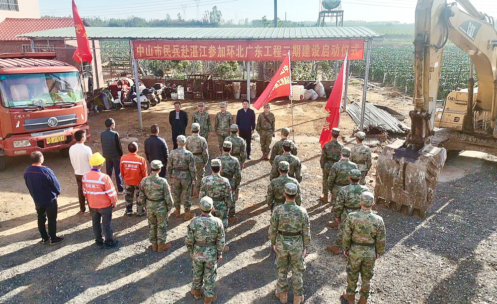 近日,中山市南朗街道人民武裝部組織民兵工程搶修搶建分隊遠赴湛江市,代表中山民兵投身環(huán)北部灣水資源配置廣東工程二期建設(shè),以實際行動助力“百千萬工程”和區(qū)域水利高質(zhì)量發(fā)展。