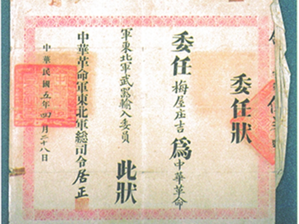 “中華革命軍東北軍武器輸入委員”的委任狀